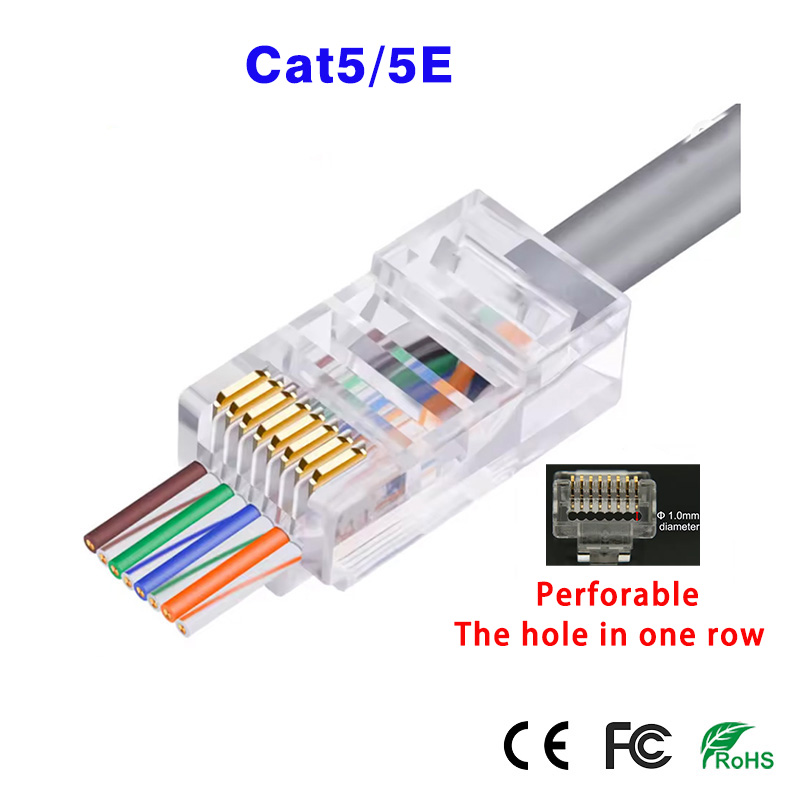 Perforable RJ45 8P8C Through Hole CAT5E/6/6A Network Cable Connector