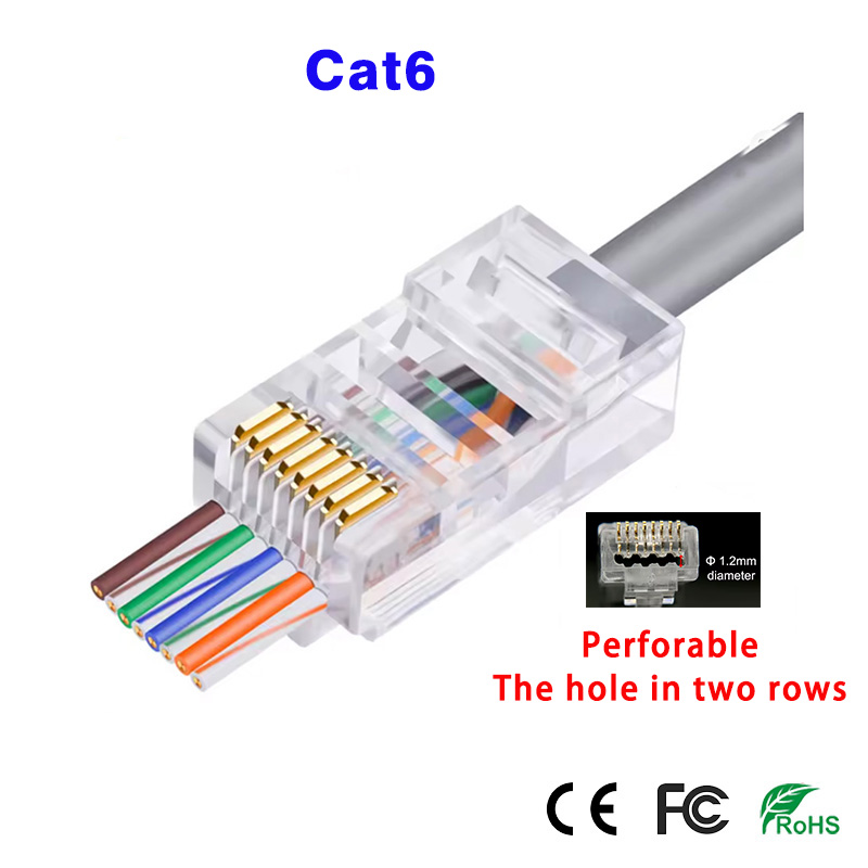 Perforable RJ45 8P8C Through Hole CAT5E/6/6A Network Cable Connector