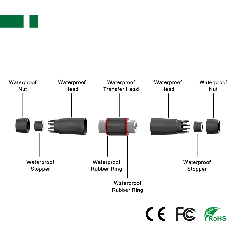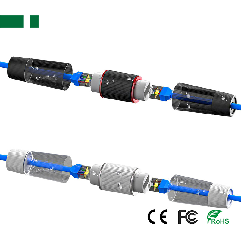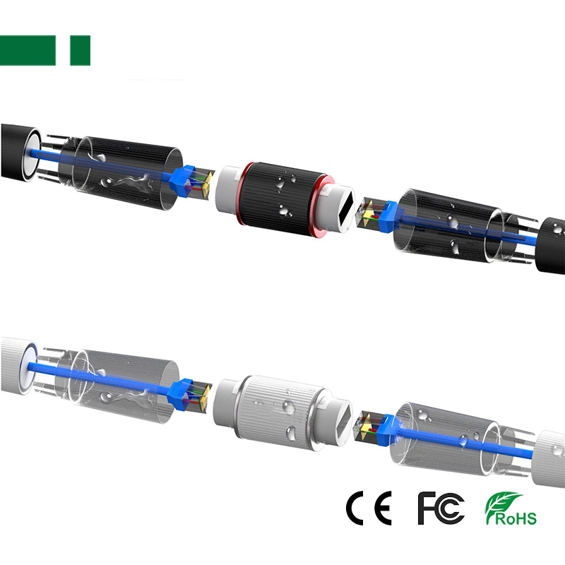 IP67 Outdoor Waterproof RJ45 Straight-through Header Connector, Ethernet Network Cable Extender.