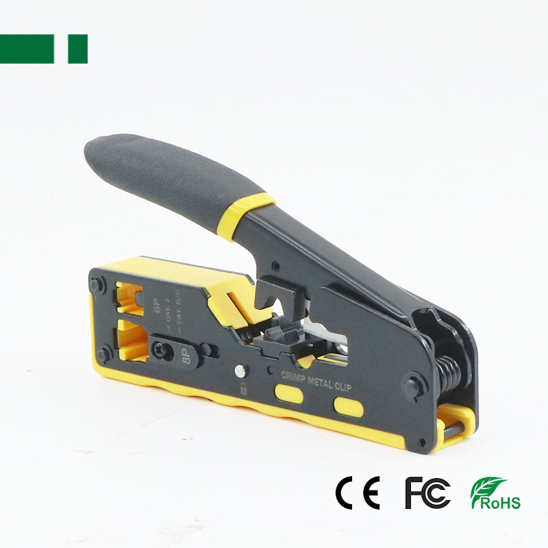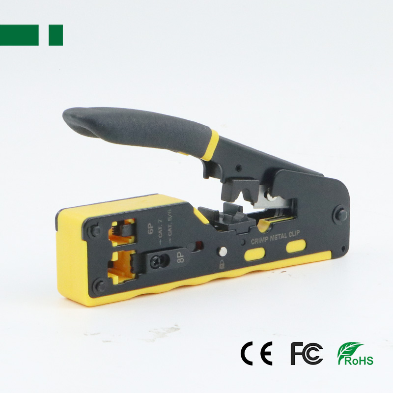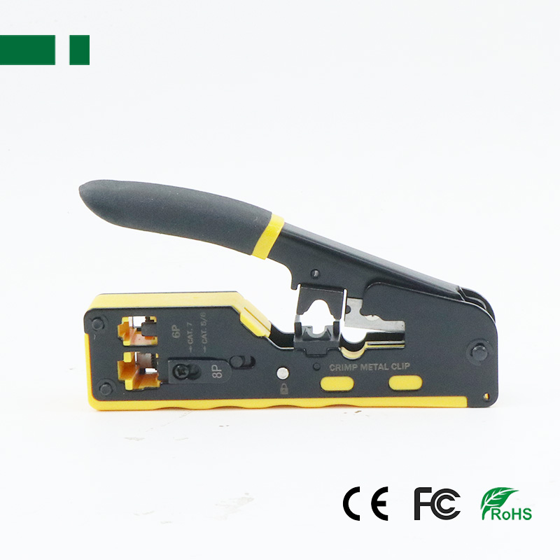 The tool is suitable for crimping Cat6/Cat7 modular plug pin 8P and 6P