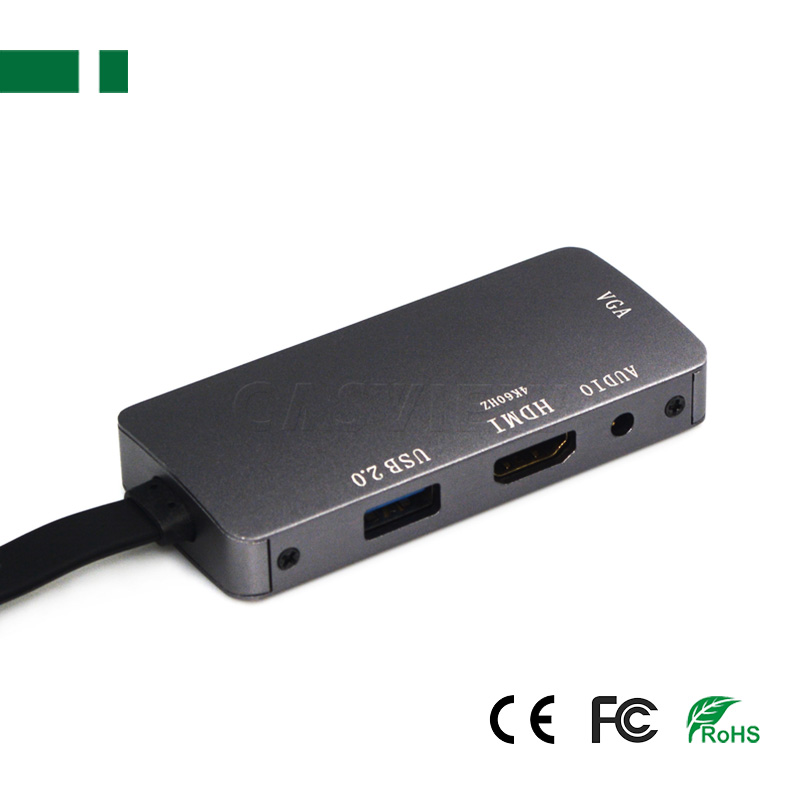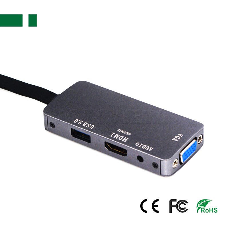 This product is a portable multi-functional conversion line. Multifunctional application of digital signal input conversion (VGA+AUDIO+HDMI video) with USB 3.1 Type C interface. In order to obtain high quality audio and video effects.