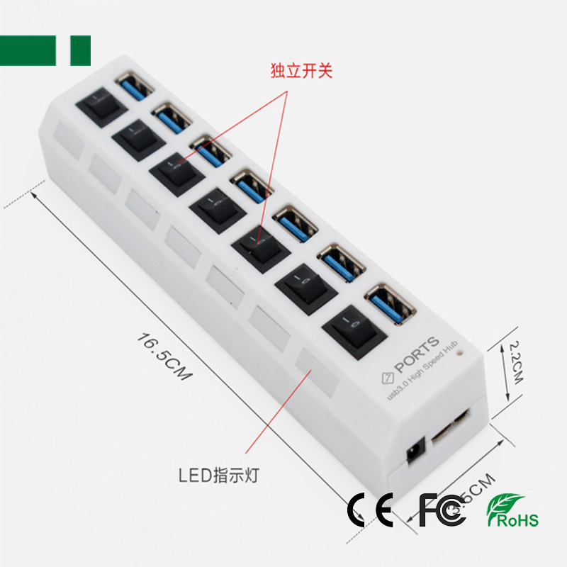 - Product description: 7 Ports USB3.0 HuB, Multi USB Ports Expander, USB Splitter With Switch For Laptop Computer