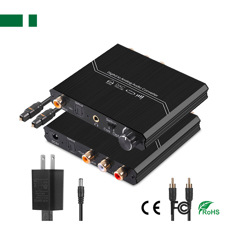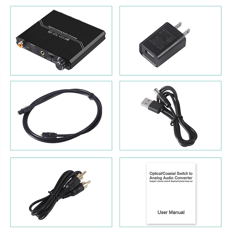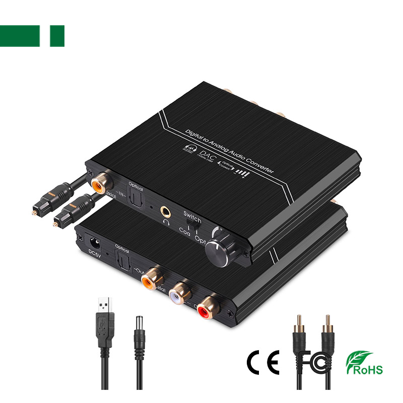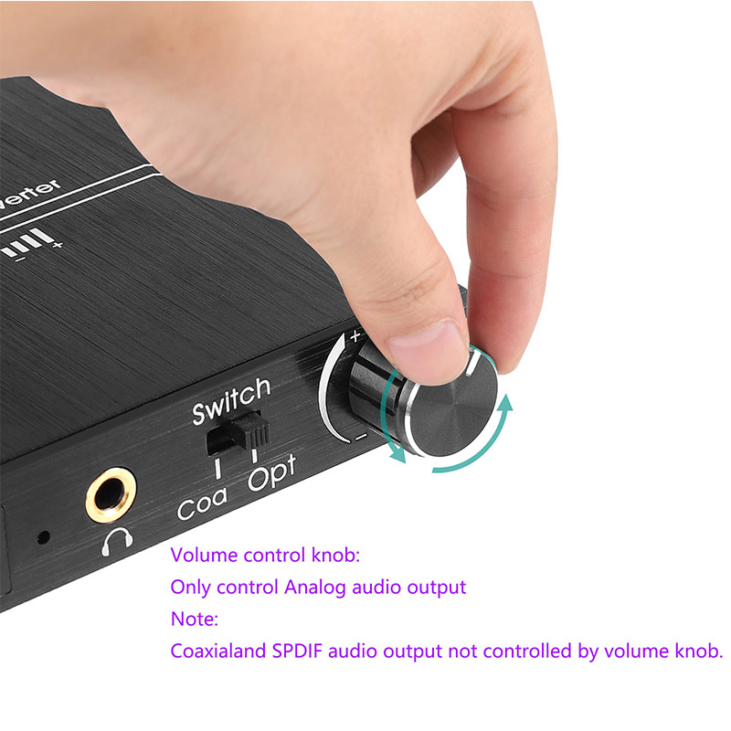 - Product description: Optical/Coaxial Switch to Analog Audio Converter, Support volume control &optical/coaxial loop out.