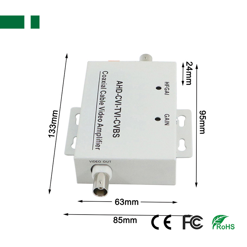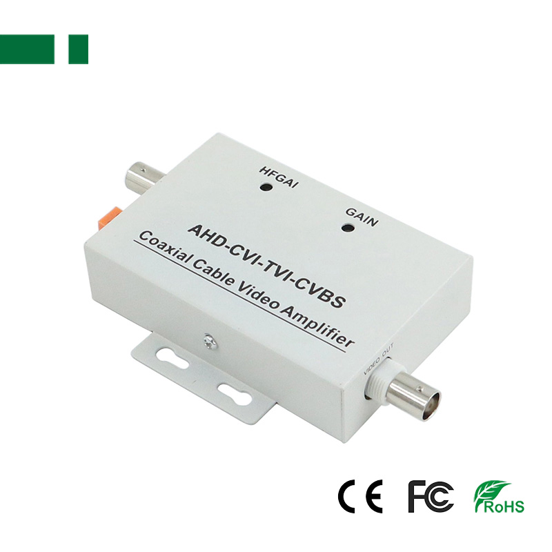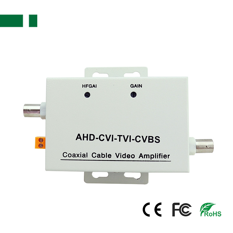 • Product description: 1-channel BNC input/output CVBS coaxial cable video amplifier, Support HD-TVI/CVI/AHD/CVBS 1-channel female BNC video input and 1-channel female BNC video output Resolution (HFGAI) and gain (GAIN) a