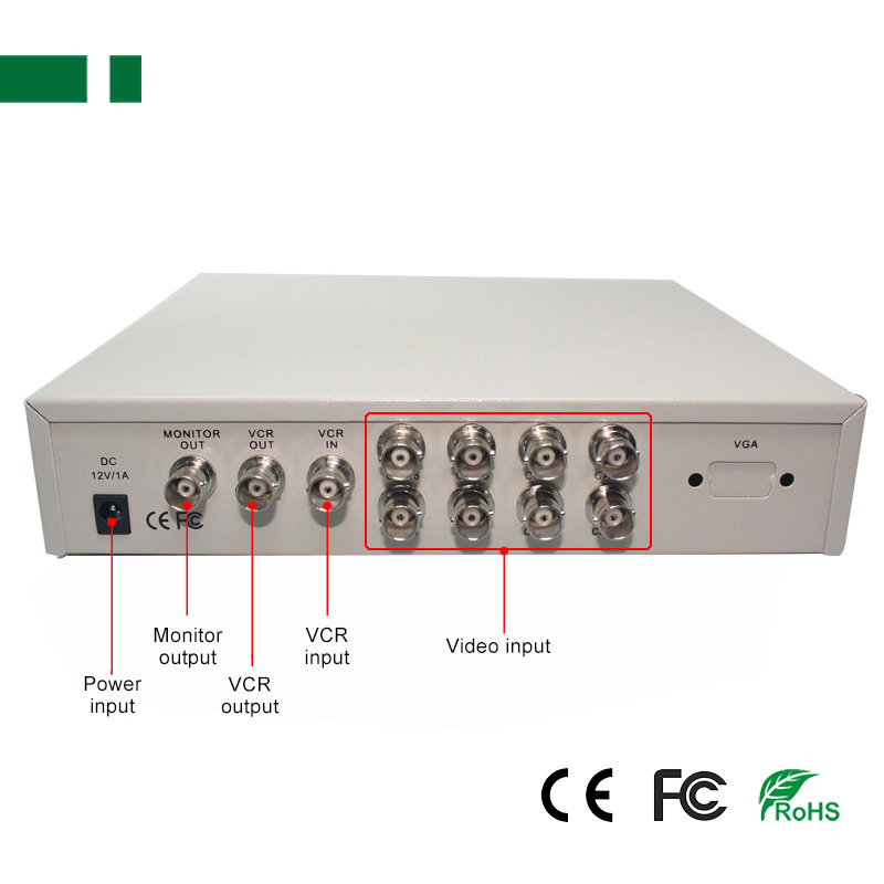 1. Connect the 1-8 channels video Signal of camera and brightness, saturation, contrast, HUE and sharpness.