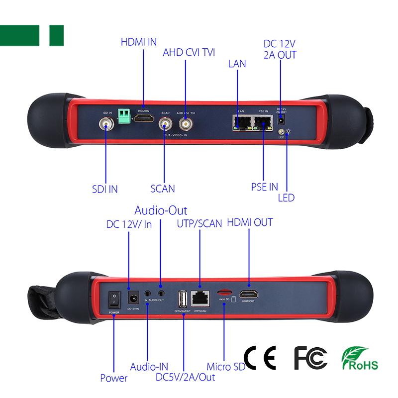 | CVBS loop test | the tester send and receive color bar generator signal, check BNC cable | ||