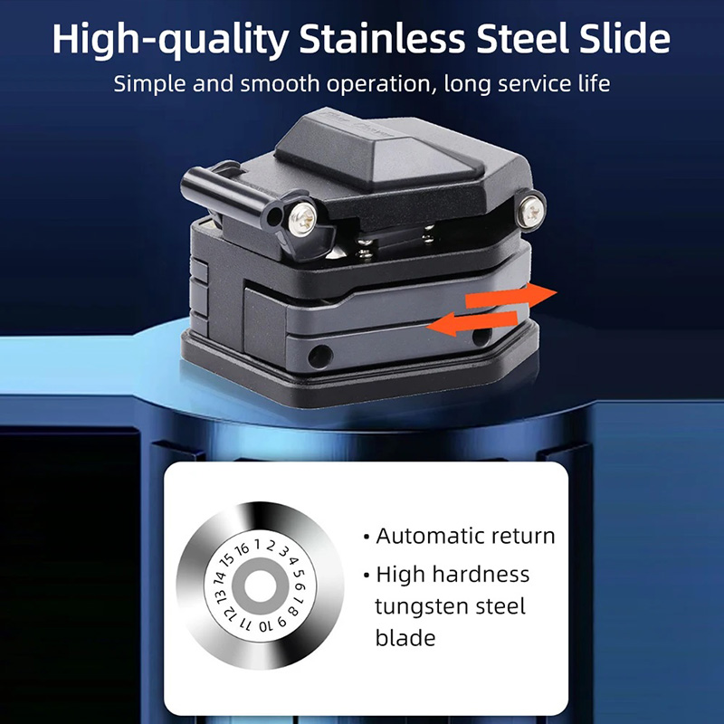- Product description: HB-6C Optical Fiber Cleaver Cable Cutting Tool High Precision Optical Fiber Cleaver Stable Angle Stainless Steel Slides