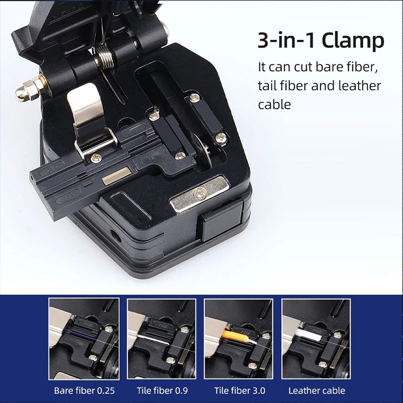 3-in-1 clamp, it can cut bare fiber, tail fiber and leather cable.