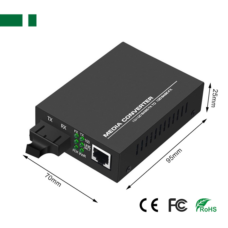 10/100Mbps Single Mode Single SC Port Fiber Optical Media Converter