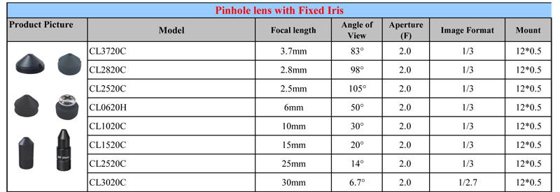 • 2.8mm Pinhole Lens with fixed iris for CCTV Sevurity