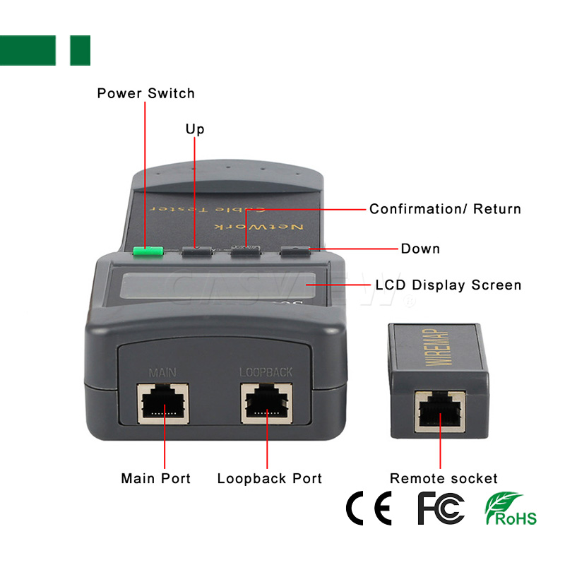 2. Can detect CAT5E, CAT6E Internet Network cable and telephone line wiring fault, open circuit,short circuit, including: cross connection, reverse connection and series wound;