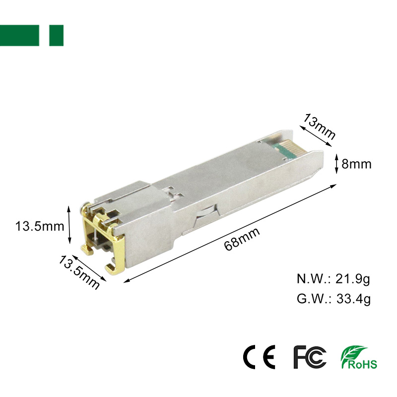 • Product description: The 10Gbps-RJ45-SFP copper transceiver module is a high performance integrated duplex data link for bi-directional communication over copper cable.