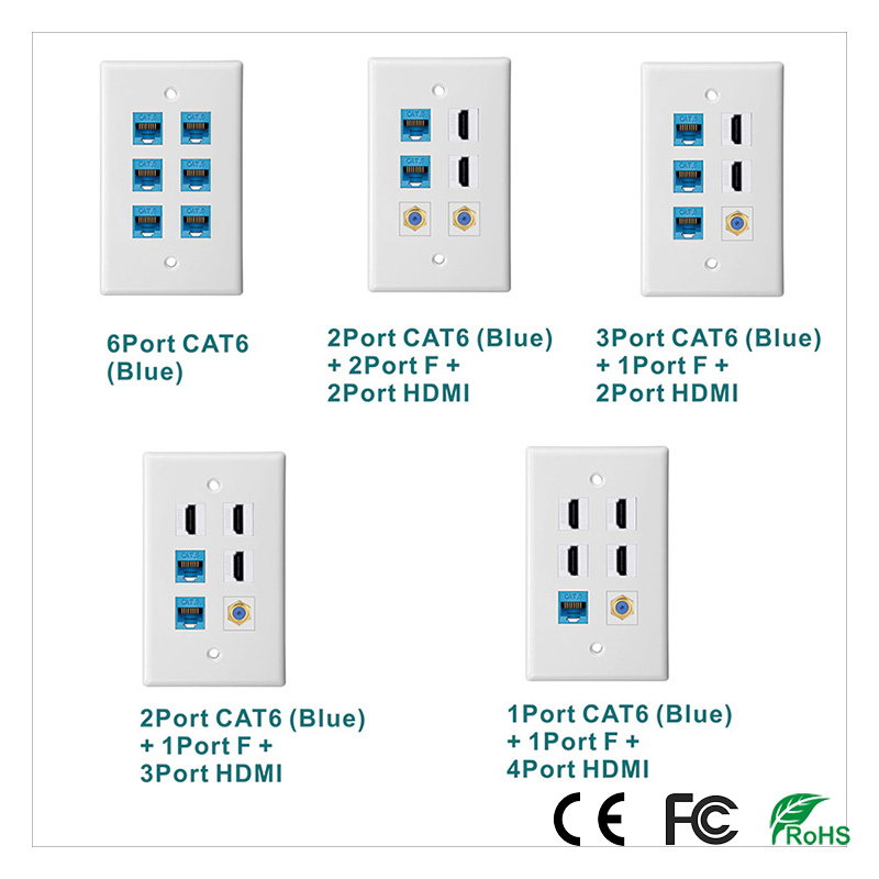 2Port CAT6 (Blue) + 2Port F + 2Port HDMI