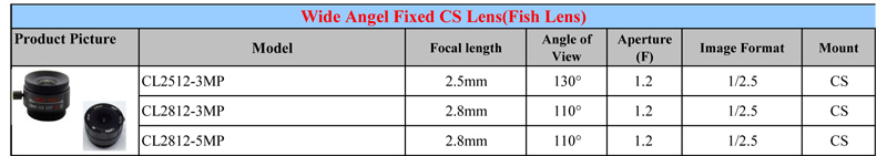 • Wide Angel Fixed CS Lens 2.5mm 3MP Fish Lens